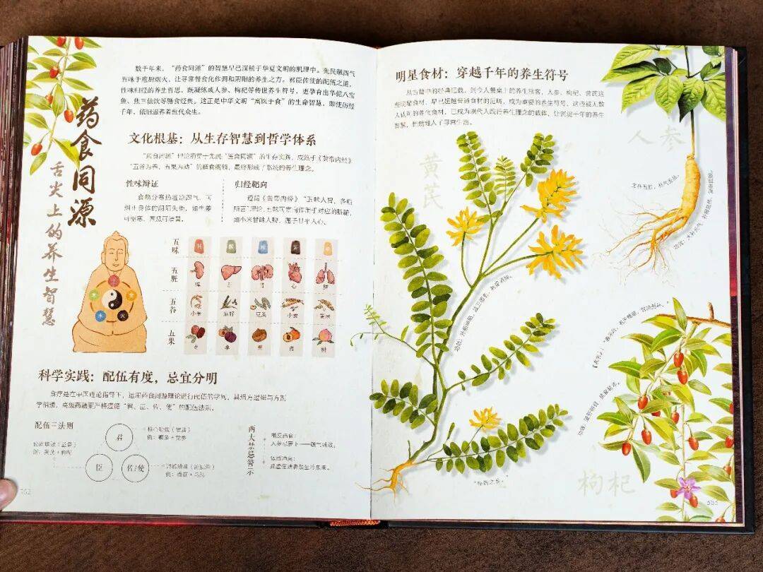 还有,食材与脏腑配伍的关系图,清晰诠释“药食同源”的养生智慧。
